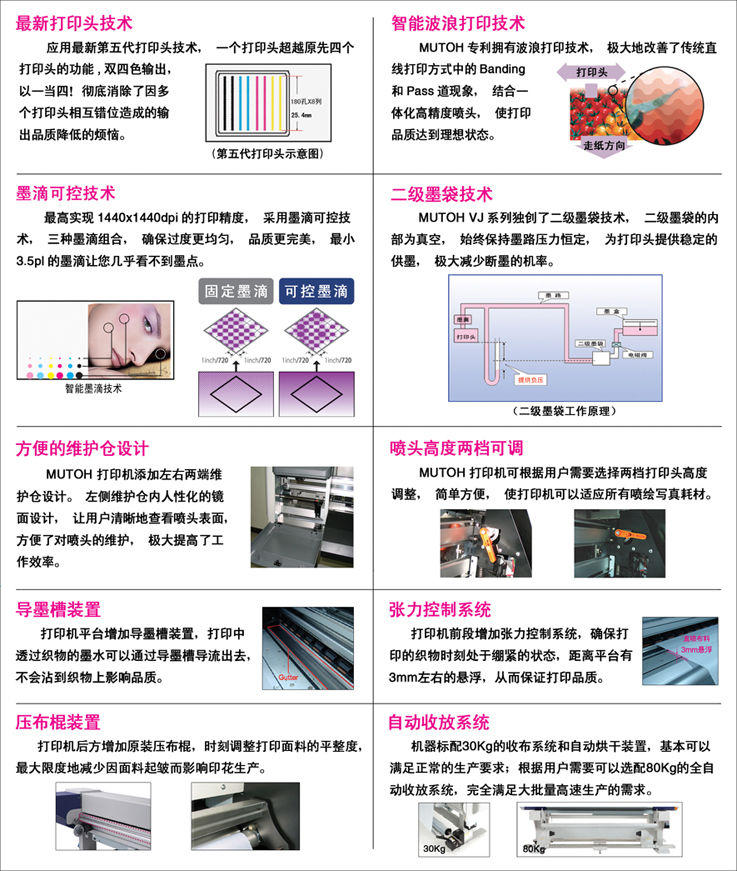 ? 獨(dú)創(chuàng)二級墨袋技術(shù),左右兩側(cè)維護(hù)倉設(shè)計;